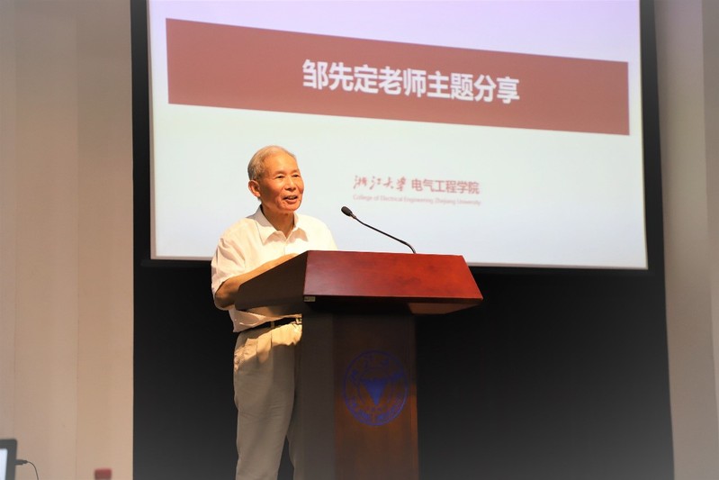 李武华老师接着与大家分享电气人砥砺科技报国的故事。李老师期望同学们在未来的“学”和“术”中,既要“顶天”,看人类看不到的地方,以创新引领祖国百年科技振兴;又要“立地”,自信我国在电气工程邻域已处于世界领先地位,书写下一代人的教科书;要内外兼修,既要发出“有功”,也要出“无功”。