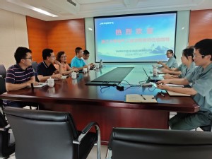 7月19日,调研小组来到本次调研的最后一站——台州玉环润尚厨卫科技有限公司。该企业在国内厨余垃圾处理器制造行业处于领先地位,产品远销海外,但在进一步压缩产品体积及提高处理产物再利用率等问题上遇到了技术瓶颈,公司总经理章新福与调研小组就电机本体设计及提高效率等问题进行了深入交流,商讨了多种压缩电机体积实施方案。
