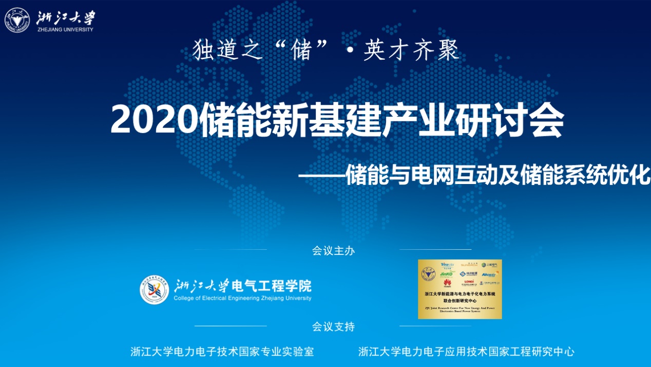 2020年7月17日,由浙江大学电气工程学院、浙江大学新能源与电力电子化电力系统联合创新研究中心主办的“独道之‘储’,英才齐聚--2020储能新基建产业研讨会”在云端顺利举行。会议邀请多位行业专家及业内资深人士参与。与会各方共同针对储能与电网互动及储能系统优化的前沿技术进行了热烈的讨论,并针对“十四五”背景下储能方向发展新模式的探索交换了意见。