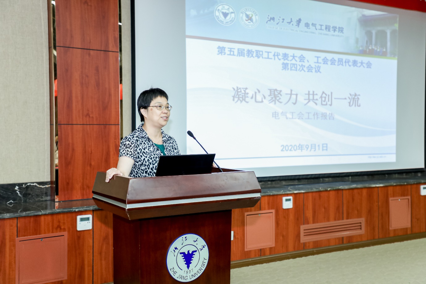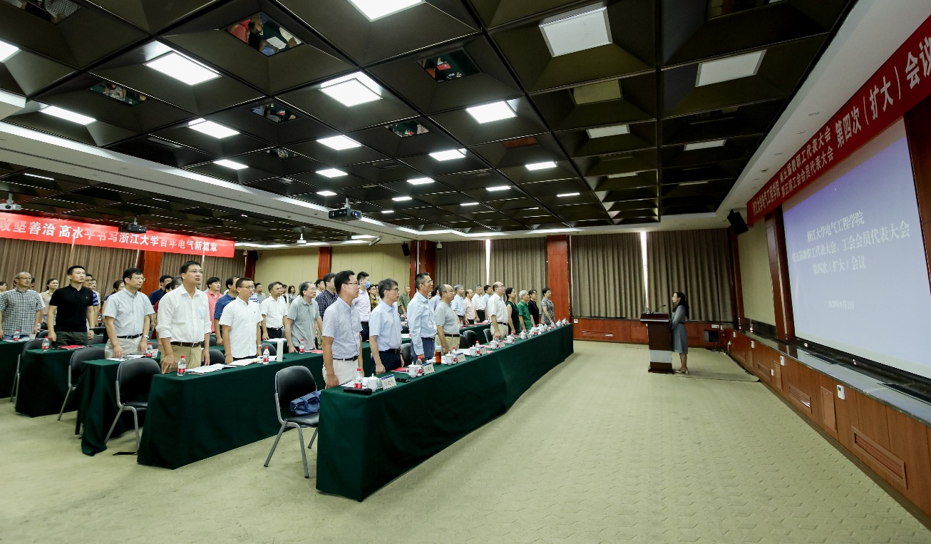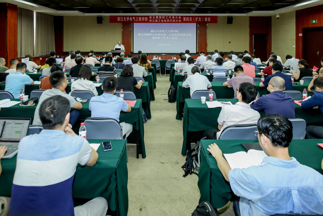为深入贯彻落实党的十九大和十九届二中、三中、四中全会精神,进一步团结全院教职员工,凝聚智慧力量,加快推进学院治理体系和治理能力现代化,高水平书写浙江大学百年电气新篇章,9月1日,浙江大学电气工程学院第五届教职工代表大会、工会会员代表大会第四次(扩大)会议在玉泉校区隆重举行。浙江大学发展规划处处长夏文莉,科学技术研究院常务副院长、先进技术研究院院长史红兵出席会议并作报告。学院院长盛况和党委书记汤海旸分别作题为《深化改革 攻坚善治 高水平书写浙江大学百年电气新篇章》的学院工作报告和《“三全育人”视域下推进学生高质量就业的若干思考》的学院学生就业战略规划专题报告。河海大学原副校长、浙江大学求是讲座教授鞠平、学院离退休党总支书记、老龄委主任吴长春等应邀出席会议。60余名学院“双代会”代表参加会议,非代表的正高级职称教职工、系所负责人、科室负责人、院长助理、特聘助理和近三年新进的“百人计划”研究员和特聘研究员等列席会议。