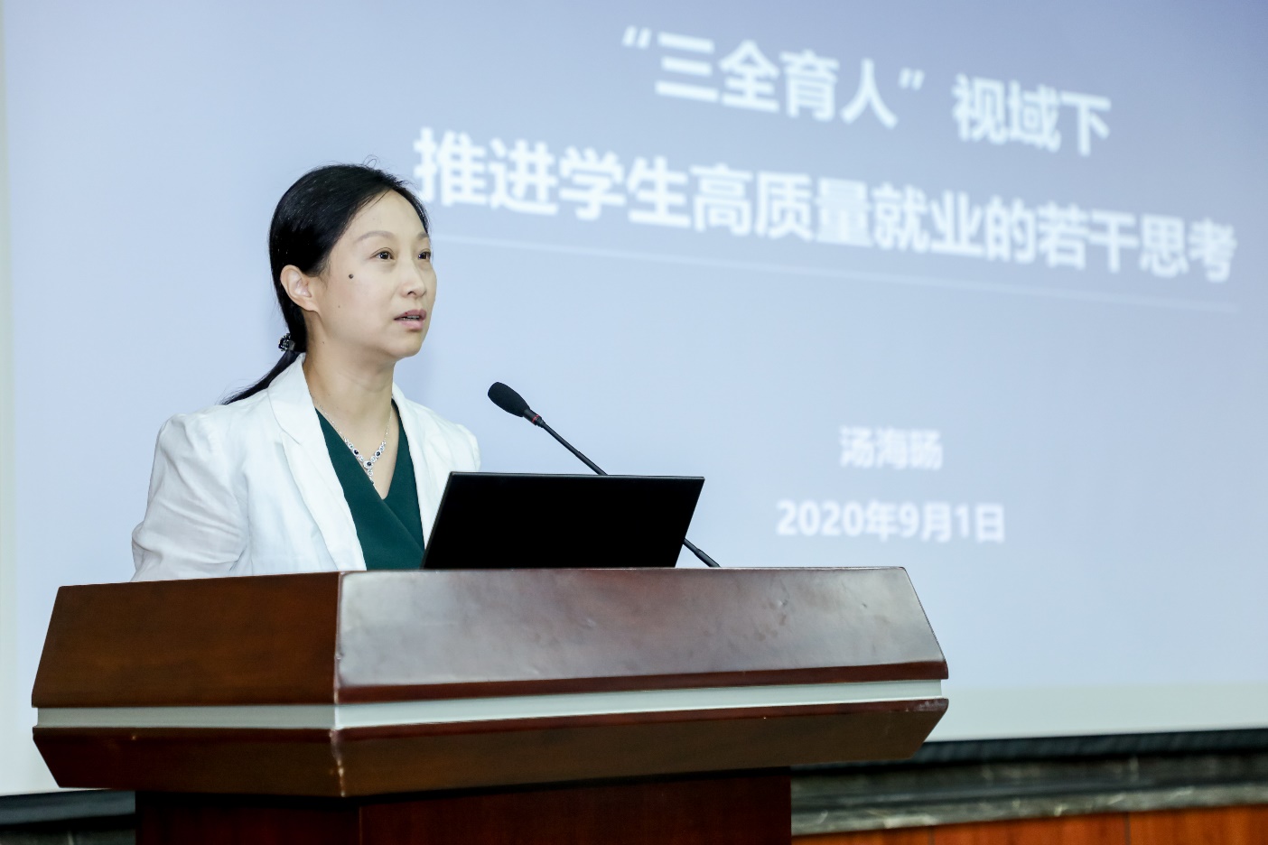 汤海旸在专题报告中分析了近三年学院的就业形势和基本情况,对标一流高校进行详细的就业层次分析,并理清当前的就业弱项。汤海旸指出,学生就业质量直接影响学校和学院的声誉与发展,要深刻认识国内外形势,全面把握就业工作的新趋势新变化。针对目前存在的问题,汤海旸指出,要继续坚持“为党育人、为国育才”,明确下一步战略布局,细化目标任务,落实“三全育人”理念,推动“四个”转变,搭建“四个”平台,完善“四个”体系,实现“四个”匹配,面对百年未有之大变局,凝聚全院师生校友力量,全面推动学生的高质量就业。