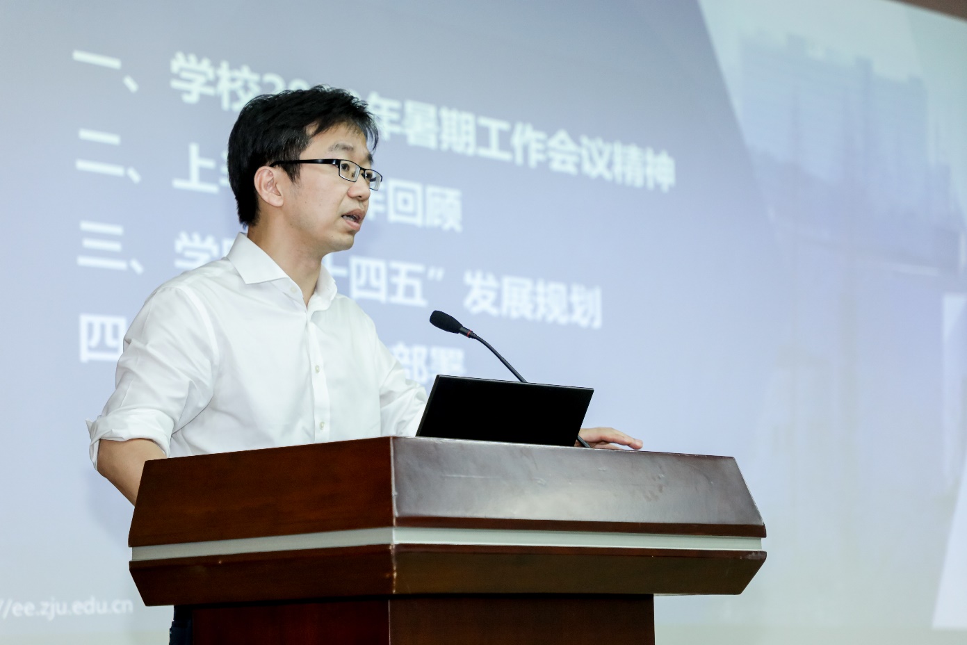 盛况在报告中传达了学校2020暑期会议精神,要求全院教职工认真学习贯彻会议精神,结合学校与学院发展,进一步开拓创新;围绕党建工作、人才培养、学科布局、师资队伍、科学研究、国际化、内部治理等方面分析学院发展现状和面临的主要问题,对上半年特别是百年院庆工作所取得的成绩表示肯定和感谢,并对下半年的重要工作进行详细部署;基于当下的形势与挑战,详细介绍了学院“十四五”发展规划的起草情况,分析了规划的主要目标、总体思路、具体举措和重要任务,要求全院教职工坚守铸魂育人的初心,勇担时代使命,不断提升国际化水平和影响力,不断改革创新培育学院发展的新引擎。