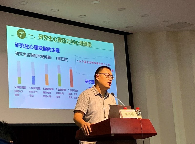 黄浩明老师以“适应与发展”为主题,深入剖析了研究生可能遇到的各种心理压力。他指出,疫情形势变化和新环境的适应期都会带来不安全感。而在研究生期间,就业、学习、婚恋和多种类的人际关系都可能成为心理压力的来源。想要克服压力,就必须不断进行自我心理、人际关系和学习能力的发展,寻找爱好、提高研究能力、尊重他人并完善自我认同是非常重要的应对压力的方式。同时也要时刻关注自己的压力是否超标,呵护自己和身边人的身心健康。