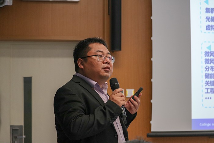 之后郑太英老师对于并网要求也做了一番详细的介绍。以2019年8月9日的英国大停电为实际案例,通过分析事件经过与损失,得出了主要原因——系统缺乏足够的转动惯量和频率调节能力。对此事件所反映的问题加以延伸,郑太英副教授又对非正常孤岛问题,电能质量问题作了深刻阐述。正当同学们听的津津有味之时,郑老师趁热打铁,向我们普及了不脱网连续运行要求,储能系统的作用以及虚拟同步机等一系列专业技术知识。最后,郑太英副教授反思并强调:日常所用的东西经常得不到人们足够多的重视。虽然电力系统控制与保护技术诞生于几十年之前,但并不代表它过时了。作为电气工程学院的莘莘学子,更要努力学习文化知识,将未来的挑战化作机遇,将能源互联的美好前景无限放大。