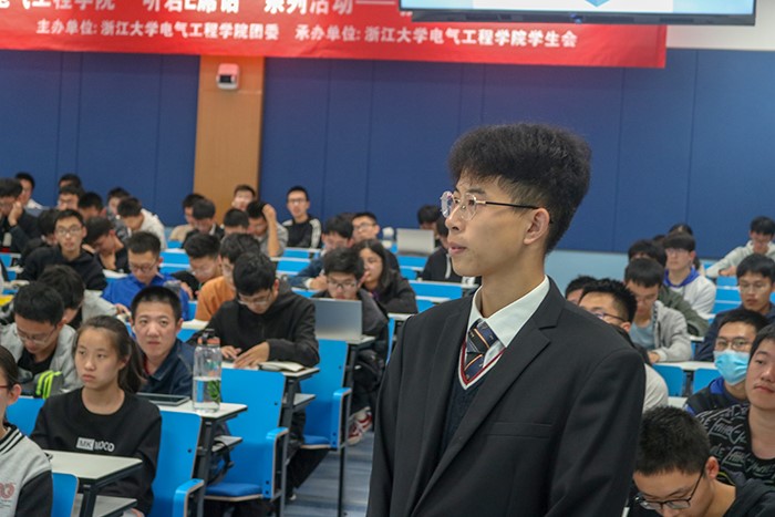 2020年10月25日19:00,电气工程学院学风建设系列主题活动之“听君E席话”——教授大牛分享会在紫金港校区东二教学楼102教室顺利举行。电气工程学院副教授、博士生导师郑太英为大一大二的同学们揭秘电气专业热点研究方向,针对同学们的问题发表了自己的看法。