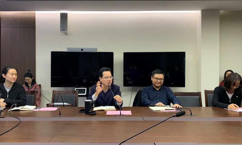 会议的第二项议程是研究生评奖评优工作的意见征集。沈远老师首先梳理了目前研究生评奖评优工作中部分问题,并向会场的德育导师和学生代表征集建议。师生们集思广益,在会场上进行了热烈讨论,沈远老师记录了其中有价值的建议。