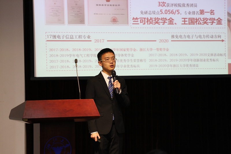 在评委提问环节中,二十位候选人沉稳应答。他们当中有综合素质优异、荣获竺奖的学术大牛,也有累计发表十多篇SCI论文的科研精英;有热心公益事业、积极参加志愿服务的优秀志愿者与形象大使,也有长于运动、爱好广泛的文艺青年——他们正是电气学子的优秀代表。同时,评审团老师们或犀利或幽默的发问也引发全场积极的响应,候选者的回答也是条理清晰、妙语连珠,收获不少好评。