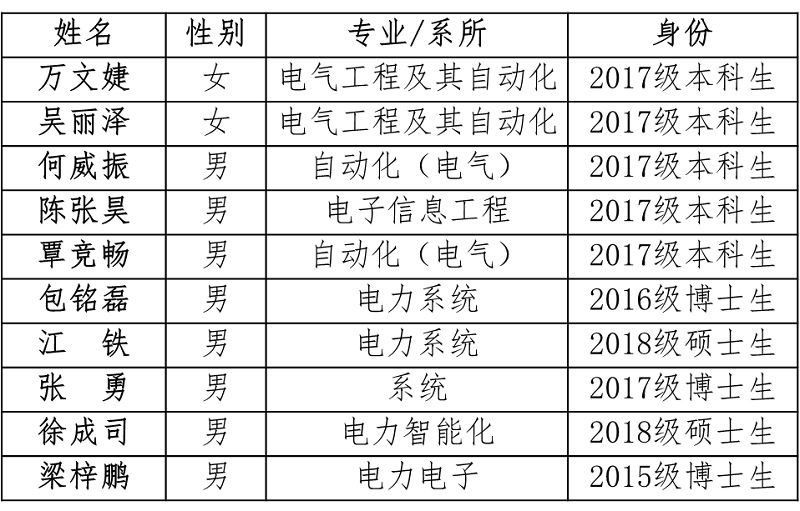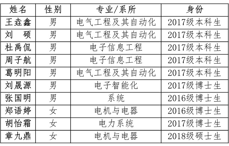 第十三届电气工程学院“十佳学子”荣誉奖获得者