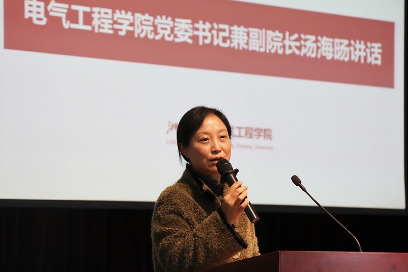 在二十位候选人风采展示阶段结束后,汤书记作为评审团代表为本届“十佳学子”候选人答辩环节做了总结。汤书记首先对本次“十佳学子”候选人的努力和成绩做出了肯定的评价;之后,汤书记针对当晚不断提到的关于“十佳学子”的标准与要求发表了自己的看法:演讲回答的能力技巧、优秀超群的综合素质、舍我其谁的精神风貌、德才皆备的礼节修养、立德报国的家国情怀都是“十佳学子”所应该具备的。最后,她提出电气工程学院“十佳学子”所要评选的不仅应该是在学业方面优秀的学生,而是在各个方面都要优秀突出的电气人。今日所评选出的“十佳学子”更应该成为电气学子的十面旗帜,成为电气学子学习的榜样。