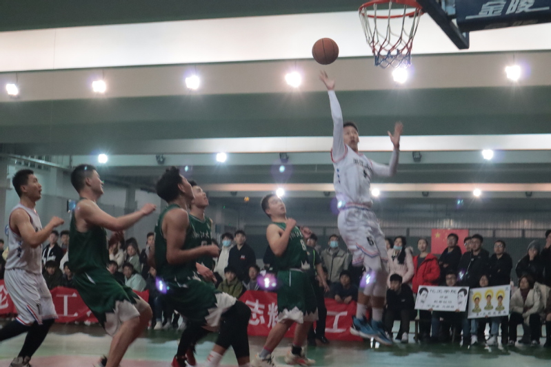 20:00左右比赛正式打响,今年的对手是拥有钢铁内线的化工学院,双方的助威队伍围满球场四周,气势浩大。