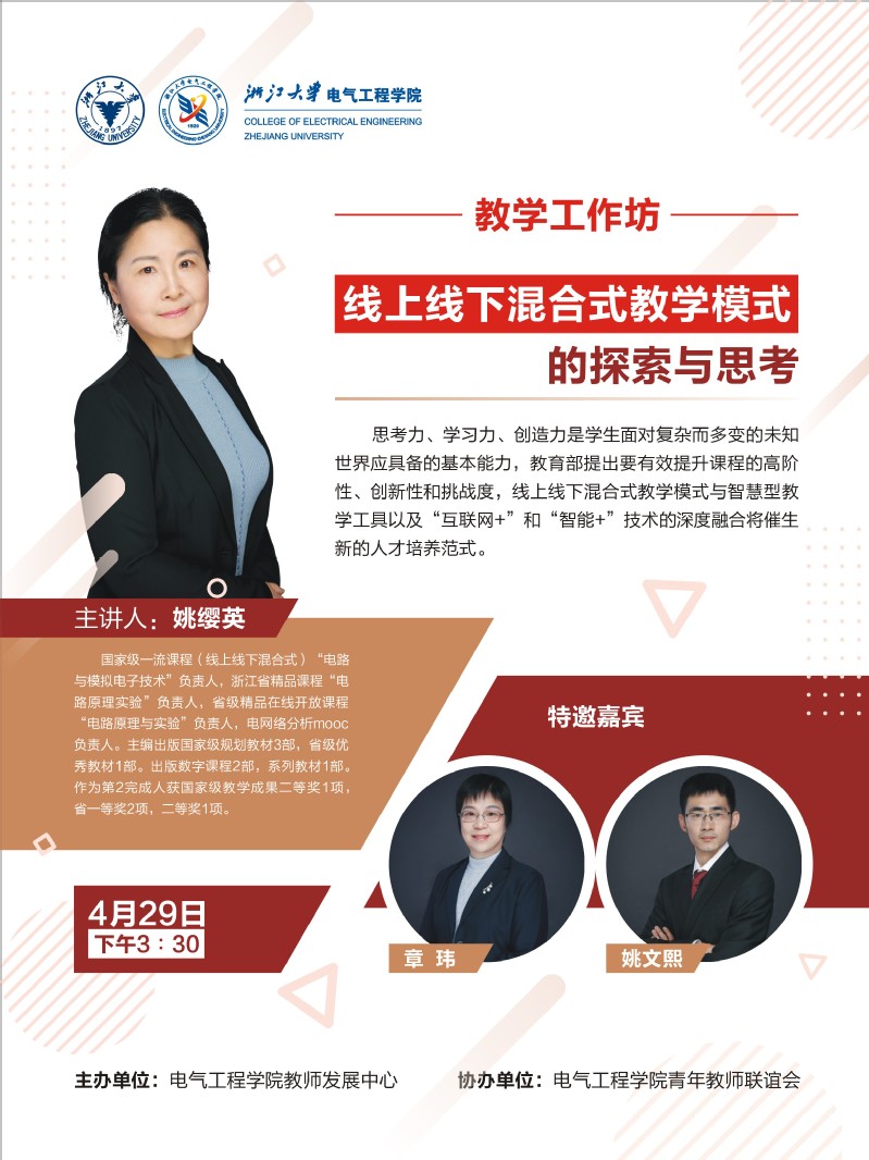 4月29日下午电气工程学院教学工作坊首场活动预告(相约星期四咖啡时间暂停一次):