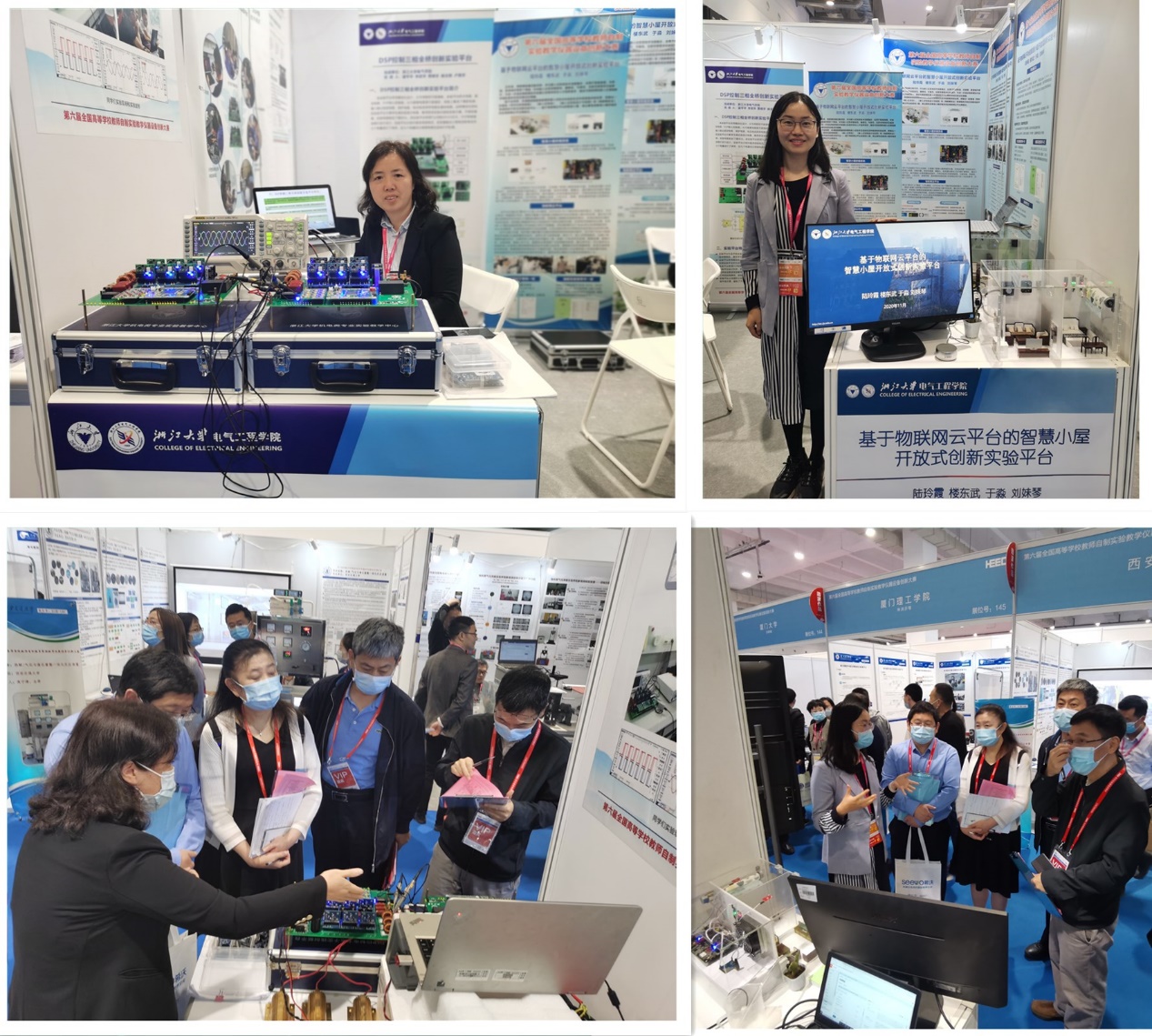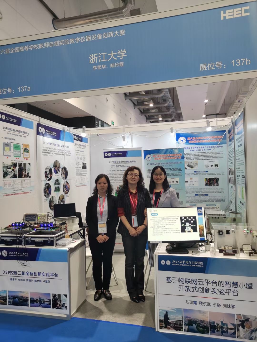 在浙江大学本科生院关心和支持下,电气学院组织了教师参与大赛,大赛分初赛和决赛两个环节,初赛阶段全国共有200多所高校600多个队伍参赛,通过大赛专家委员会对报名作品进行了初赛网评,严格按照评审标准,评审出351件作品,获得决赛入围资格。决赛队伍包含清华大学、北京大学、浙江大学等140余所高校共计351支教师队伍参加。在复赛阶段,学院卢慧芬老师带队赶赴青岛参赛,经过答辩与展示环节,谌平平老师团队自制的“DSP控制三相全桥创新实验平台”和陆玲霞老师团队自制的“基于物联网云平台的智慧小屋开放式创新实验平台”兼顾设备教学性、创新性、实用性和先进性,获得全国三等奖,学院教师在工程实践教育和创新创业素质等方面的表现赢得了评审专家的肯定和认可。