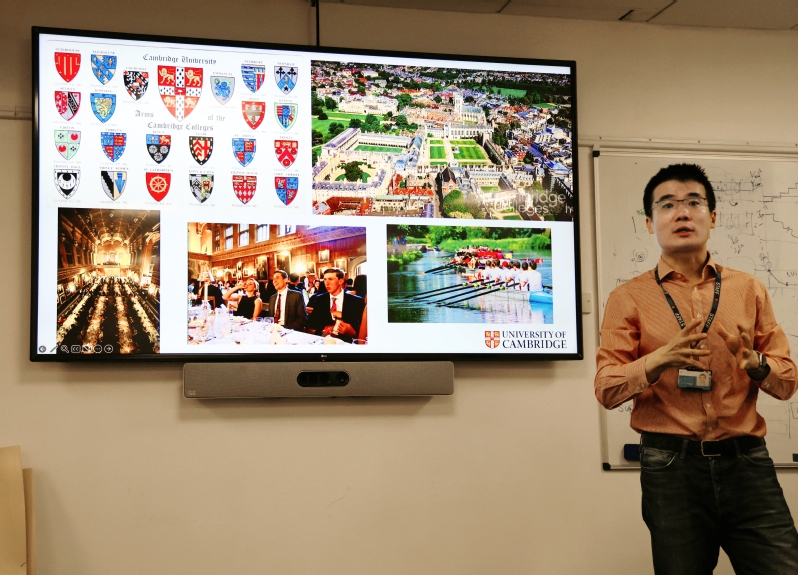 团队前往剑桥大学,对话电力电子实验室龙腾教授课题组。龙腾教授代表课题组对团队的到来表示热烈欢迎,并围绕剑桥大学的办学特色、学科布局及招生教学体系展开详细介绍。他特别通过短片直观展示了剑桥大学与城市深度融合的独特校园格局,清晰阐释了大学与学院在管理架构上的本质区别。随后,龙腾老师实验室的两位博士向同学们分享了分享了个人求学经历、海外博士申请和奖学金申请经验,并与同学们进行了交流互动。同学们踊跃提问,积极交流,受益匪浅。