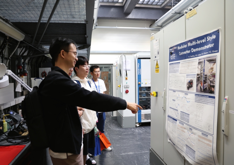 在帝国理工学院讲师顾云杰老师课题组博士与博士后的带领下,团队进入该校智慧能源实验室参观学习。博士们结合自身研究经验,对实验室中的先进专业设备进行了细致讲解,帮助同学们直观理解专业设备如何支撑前沿研究。过程中,同学们认真聆听、不时提问,围绕设备操作原理、实验数据处理等细节展开互动交流,现场学习氛围浓厚。实验室里精密的电力电子硬件、高效的实验测试系统,以及严谨的科研布局,让团队成员深刻感受到帝国理工学院在电气与电子工程领域的扎实科研基础。