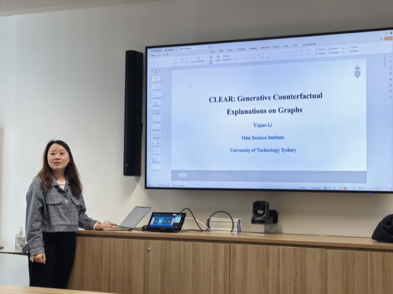 团队访问了悉尼科技大学,工程与信息科技学院副教授李志栋热情接待了研学团队。博士后Yiqiao Li围绕图上的生成式反事实解释主题展开学术报告,深入剖析该领域的技术逻辑与应用价值;博士生Rongcheng Wu 则聚焦面异常检测的深度学习,分享深度学习在异常识别领域的前沿进展与实践案例。两场报告为师生搭建了学术交流桥梁,进一步丰富了本次研学的知识维度。