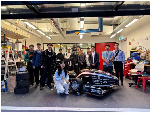除学术交流外,该校学生赛车社团的探访同样令人印象深刻。据悉,该社团由多专业学生共同组建,成员们全程亲手参与赛车各部件的搭建工作,从设计到组装,充分融合不同学科知识与实践技能。此次参观让研学团队直观感受到新南威尔士大学学生在跨学科协作、动手实践方面的突出能力,进一步拓展了同学们的学术视野。