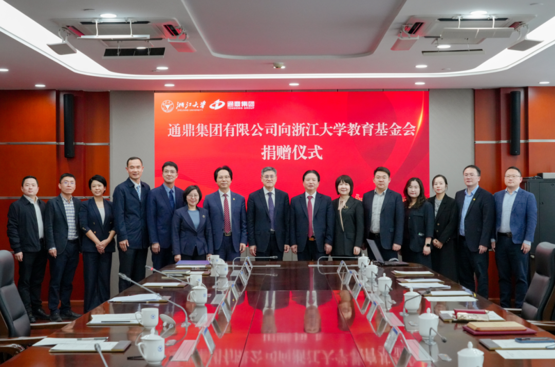 十月杭城,秋意正浓。10月29日下午,通鼎集团向浙江大学教育基金会捐赠仪式在浙江大学紫金港校区举行。浙江大学党委书记、教育基金会理事长任少波向通鼎集团有限公司董事长沈小平、通鼎集团有限公司总经理钱慧芳颁发捐赠铭牌、捐赠证书并讲话。党委常委、副校长黄先海和钱慧芳签署捐赠协议书。仪式由浙江大学发展联络办公室主任、教育基金会秘书长刘峥嵘主持。