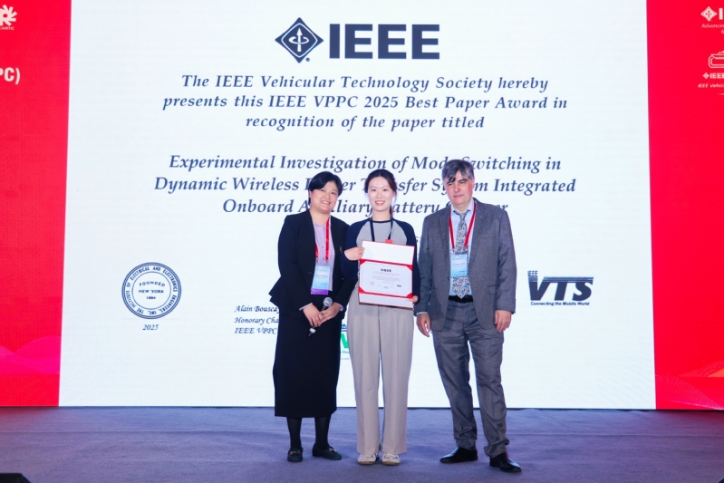 黄晓艳教授(左1)和VPPC指导委员会主席Alain BOUSCAYROL(右1)为最佳论文获得者颁发证书