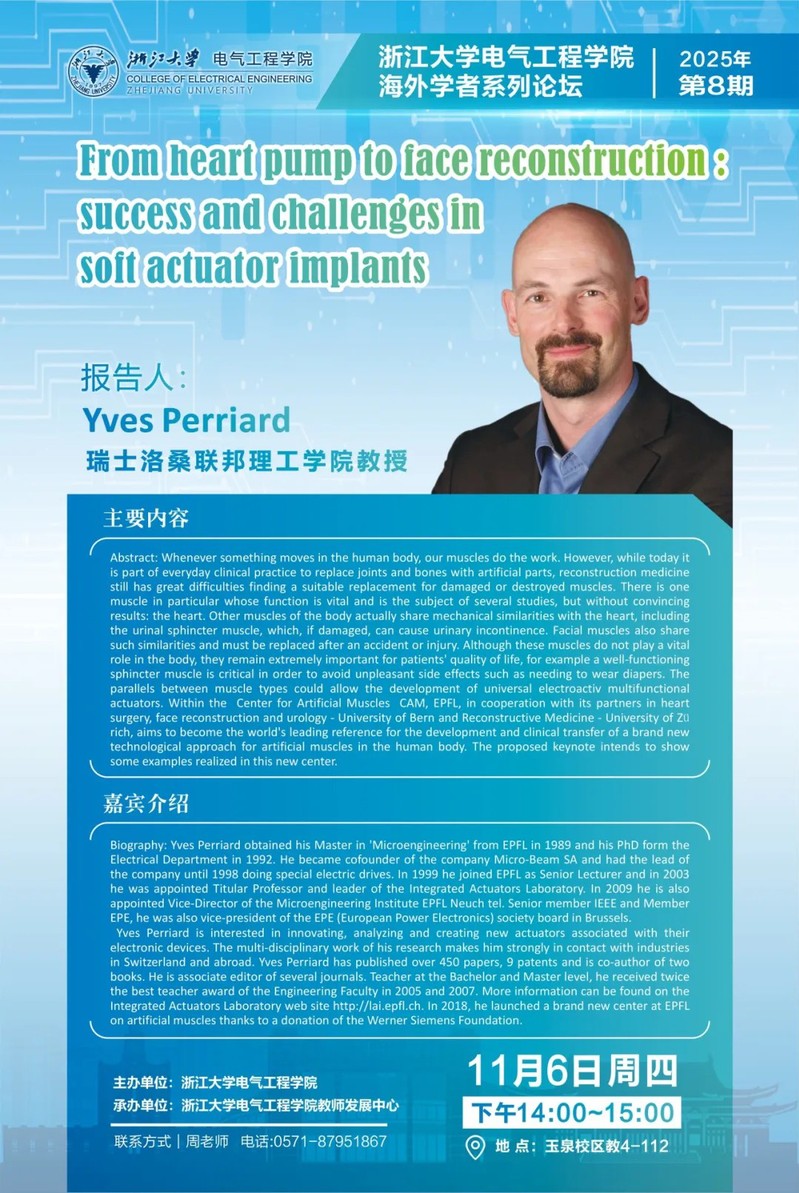 2025 海外学者系列论坛 No.8|瑞士洛桑联邦理工学院Yves Perriard教授学术报告