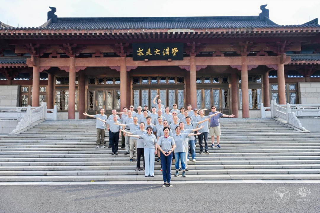 求是大讲堂前的集体合影。荣棣之华,四秩怀思,每一个笑脸在阳光下熠熠生辉,同学们笑容中满是骄傲与感动。