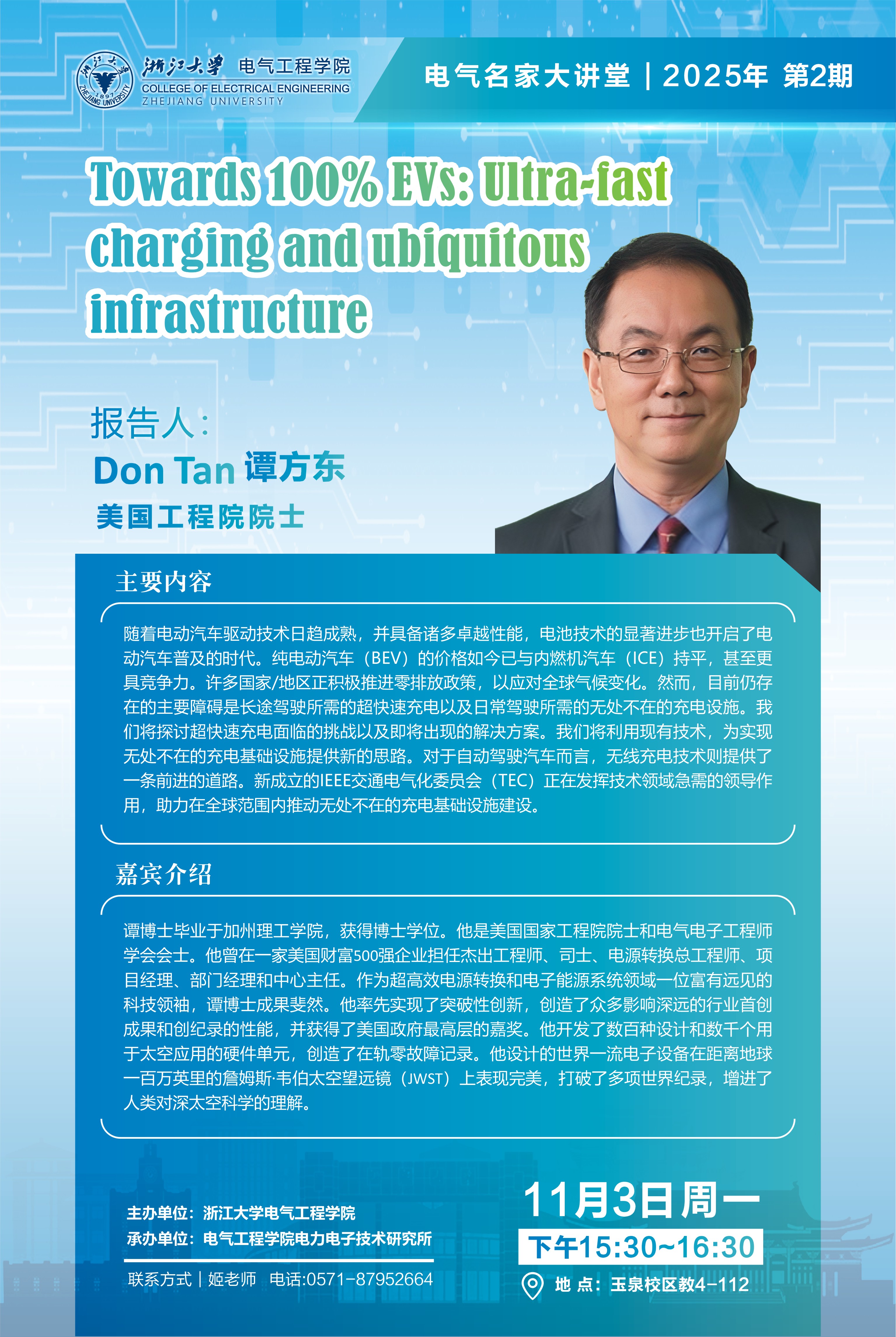电气名家大讲堂No.2|美国工程院院士Don Tan (谭方东) 教授学术报告