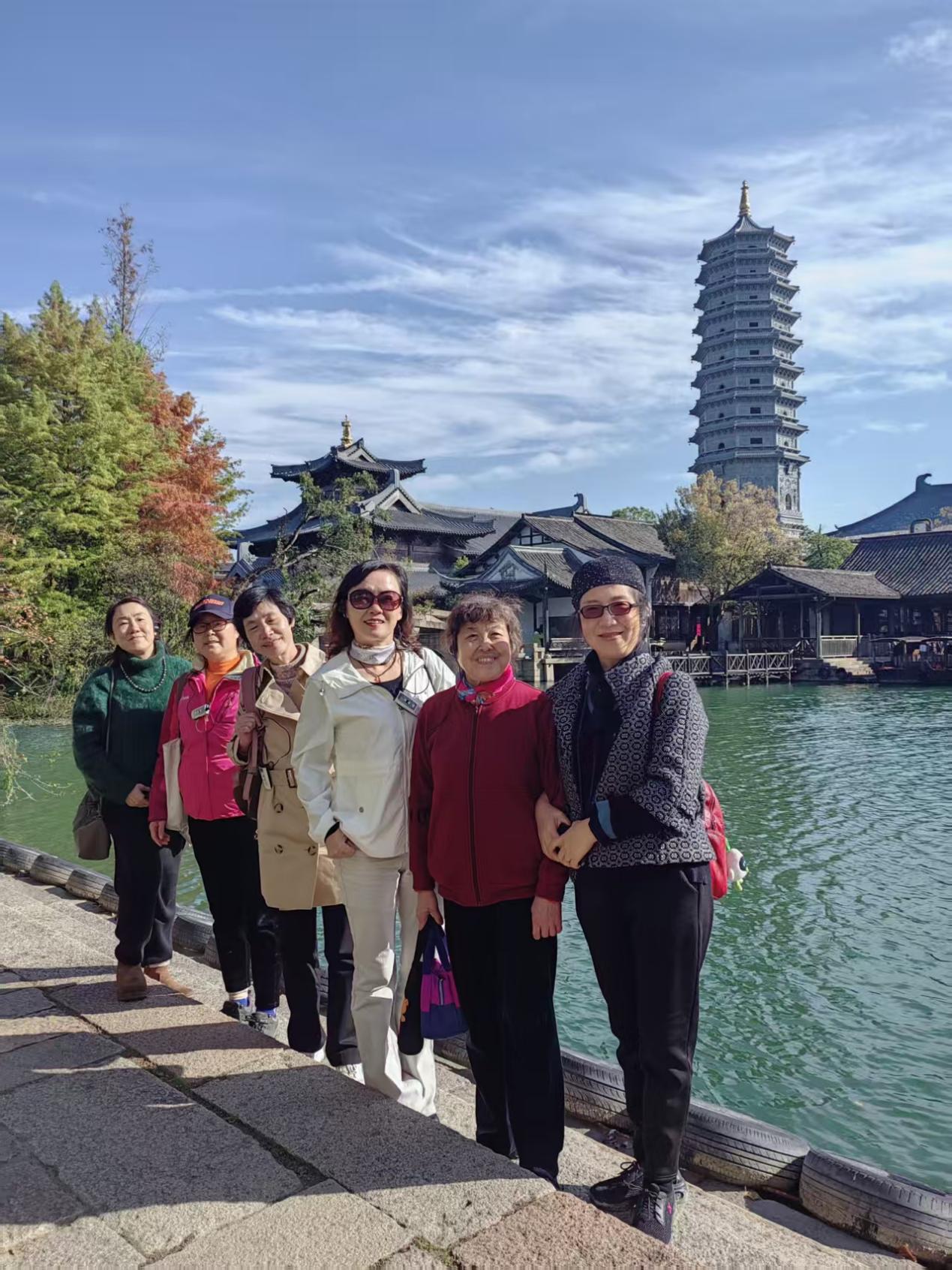 午后,老同志们前往濮院时尚古镇。这座位于浙江省桐乡市濮院镇的古镇,是京杭大运河出嘉兴市区后流经的第一个古镇,核心景区用地达1277亩。这里的水乡特色浓郁,建筑风格独具一格。在濮院古镇,参观古镇的核心景区和产业,了解了当地的历史文化与产业发展之间的紧密联系。“天下第一绸”的故里这一称号,让人深度领略了当地经济的繁荣以及历史文化的深厚底蕴。